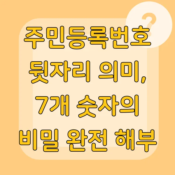 총 13자리로 구성된 주민등록번호, 마치 신비로운 암호 같지 않나요? 앞 6자리는 우리 모두 알고 있듯이 생년월일을 나타냅니다.🎂 뒷 7자리는 좀 더 특별한 정보를 담고 있는데요, 성별과 출생 시대, 출생 지역, 출생신고 순서, 그리고 검증 숫자까지! 마치 개인의 고유한 정보를 담은 캡슐 같아요.💊 자, 그럼 이제 뒷자리 7개 숫자의 비밀을 하나씩 풀어볼까요?