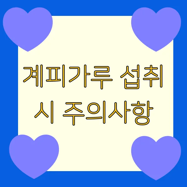 휴, 계피가루의 효능에 대해서는 이제 어느 정도 감이 잡히시죠? ^^ 그런데 말이죠, 아무리 몸에 좋은 것도 과하면 독이 된다는 옛말이 괜히 있는 게 아니랍니다! 계피가루도 마찬가지예요. 효능에만 눈이 멀어서 무턱대고 섭취했다간 으악?! 생각지도 못한 부작용을 경험할 수도 있다는 사실~! 그러니까 우리, 계피가루를 안전하고 효과적으로 섭취하기 위한 주의사항들을 꼼꼼하게 살펴보도록 해요! ?