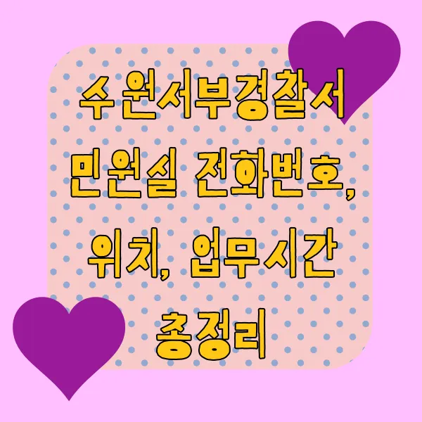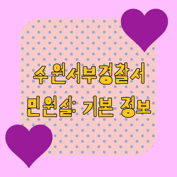 수원서부경찰서 민원실에 대한 핵심 정보들을 보기 쉽게 표로 정리했습니다!